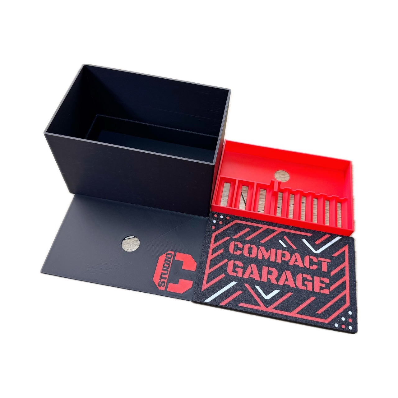 公式大会や近所に少し走らせに行く時など、必要最低限の荷物をコンパクトに持ち運べるコンパクトサイズのピットボックスです。