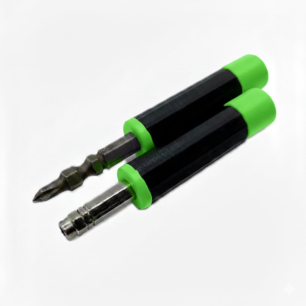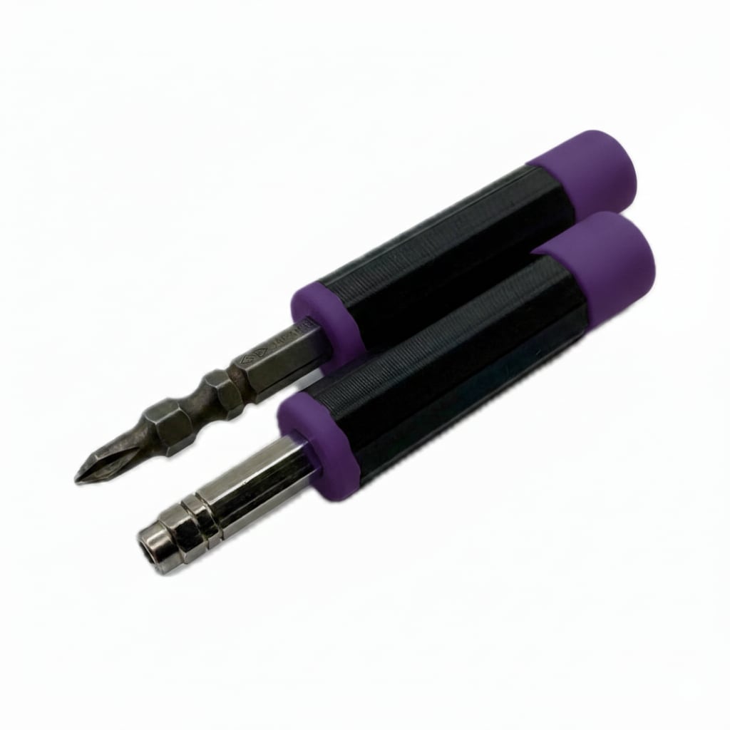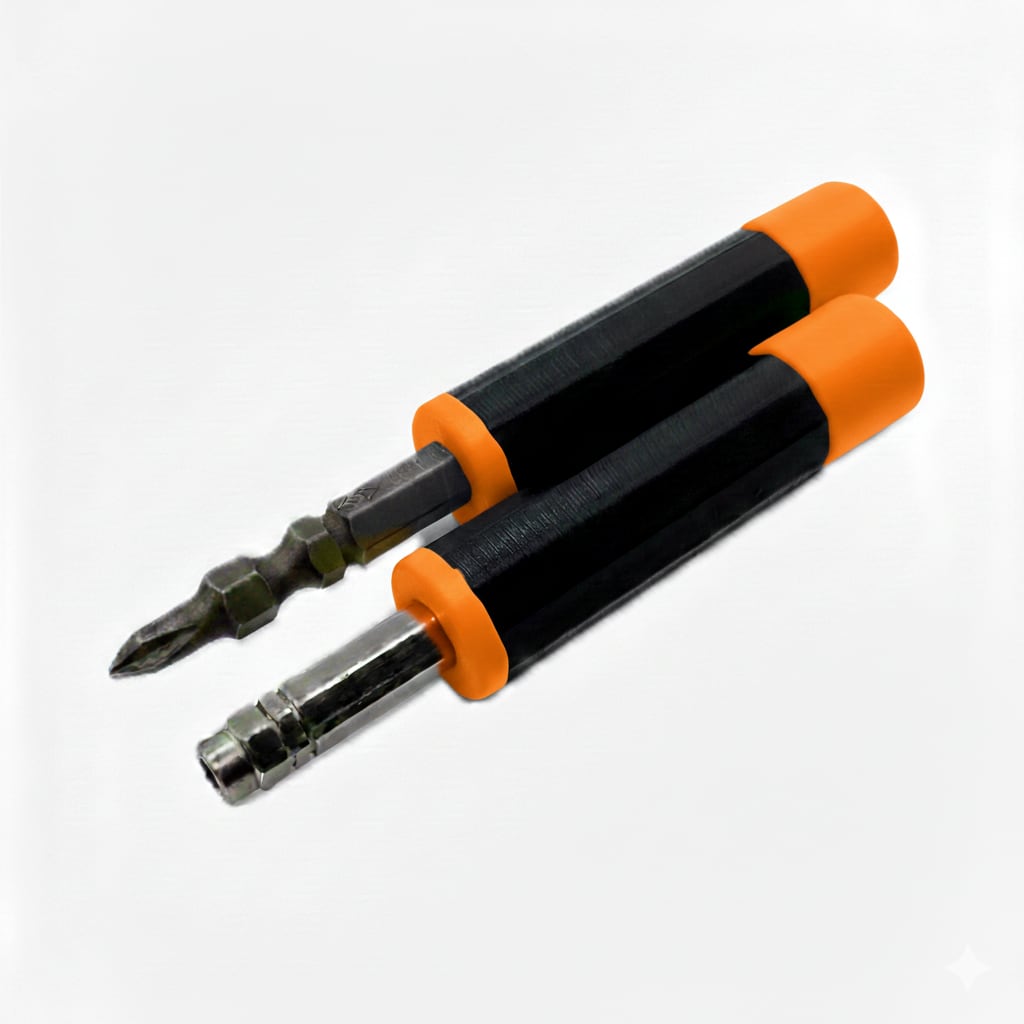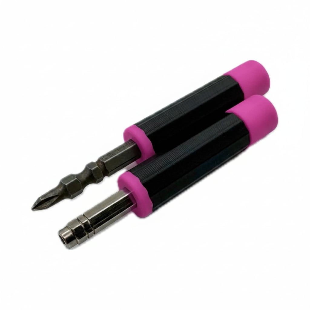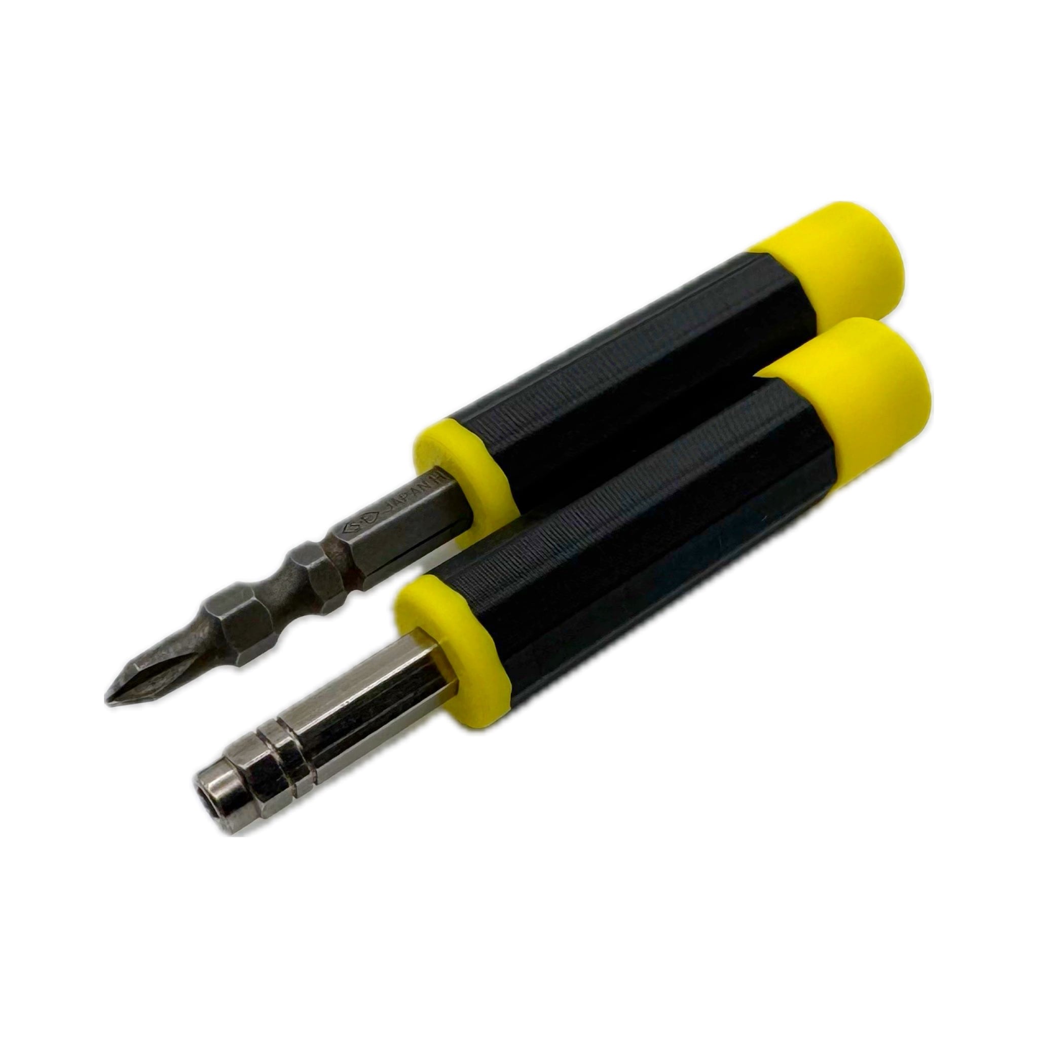 ビット交換式ドライバーをより使いやすく。回転ヘッドとマグネット内蔵で、メンテナンスの質を向上させる2本セットのドライバーグリップです。